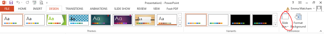To make a figure in PowerPoint, start by changing your slide size to be the size you want your final figure. Go to the “Design” tab on the main menu and then go over to the “Slide Size” tab. From there you can input a custom slide size.