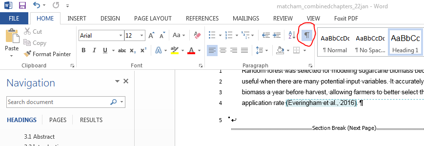This is a trick I’ve used before in other documents, so you’d think I’d be a pro. Turns out I new how to make page breaks, but not how to get rid of them. Deleting a page break is an important step if you want to move where a table is in your document. Click the “show paragraphs” button on the Home tab of the main menu. Then you can see where the page breaks are and use the delete button (not the backspace button) to get rid of them. You can learn more about removing page or section breaks here: Delete a section break.