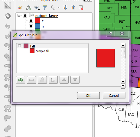 Next I used the HEX codes provided to set my colors in QGIS. I just double clicked the color square and then went to “Simple fill” and scrolled down til it gave me an option to change the color.