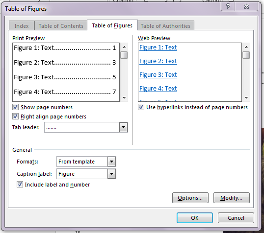 It starts really similarly to making a Table of Contents. Go to References on the main menu tab, then go to the right until you see “Insert Table of Figures.” That will cause a pop out.