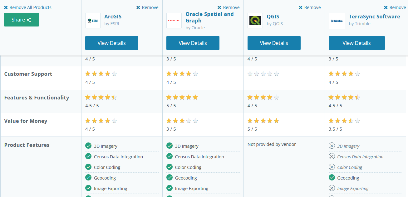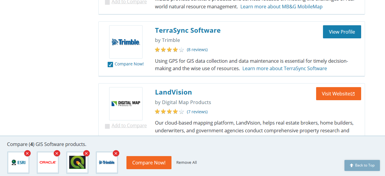 I went to the GIS software category. From there, I clicked the little box next two 4 softwares I was most interested in so that I could compare them.