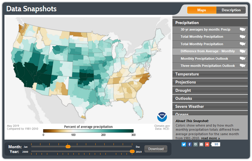 Overall, my favorite part of the NOAA climate.gov portal is the accessibility of both past weather and long term climate trends. The maps are easy to read, and even their meta-data is readily available. Enjoy!