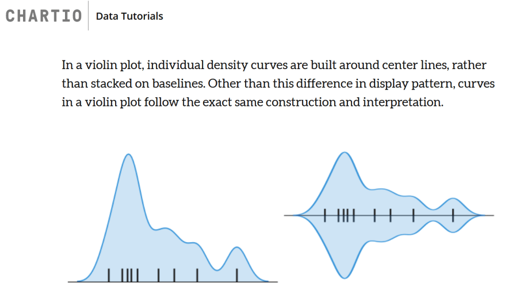 In short, violin plots are used to show the distribution of data and can provide more information than a standard box plot. If you’re looking for a more detailed explanation of how different data distributions would appear in a violin plot, I highly recommend this post from Eryk Lewison at Medium– the GIF at the end is a great visualization of what data a violin plot can show that a box plot might hide.